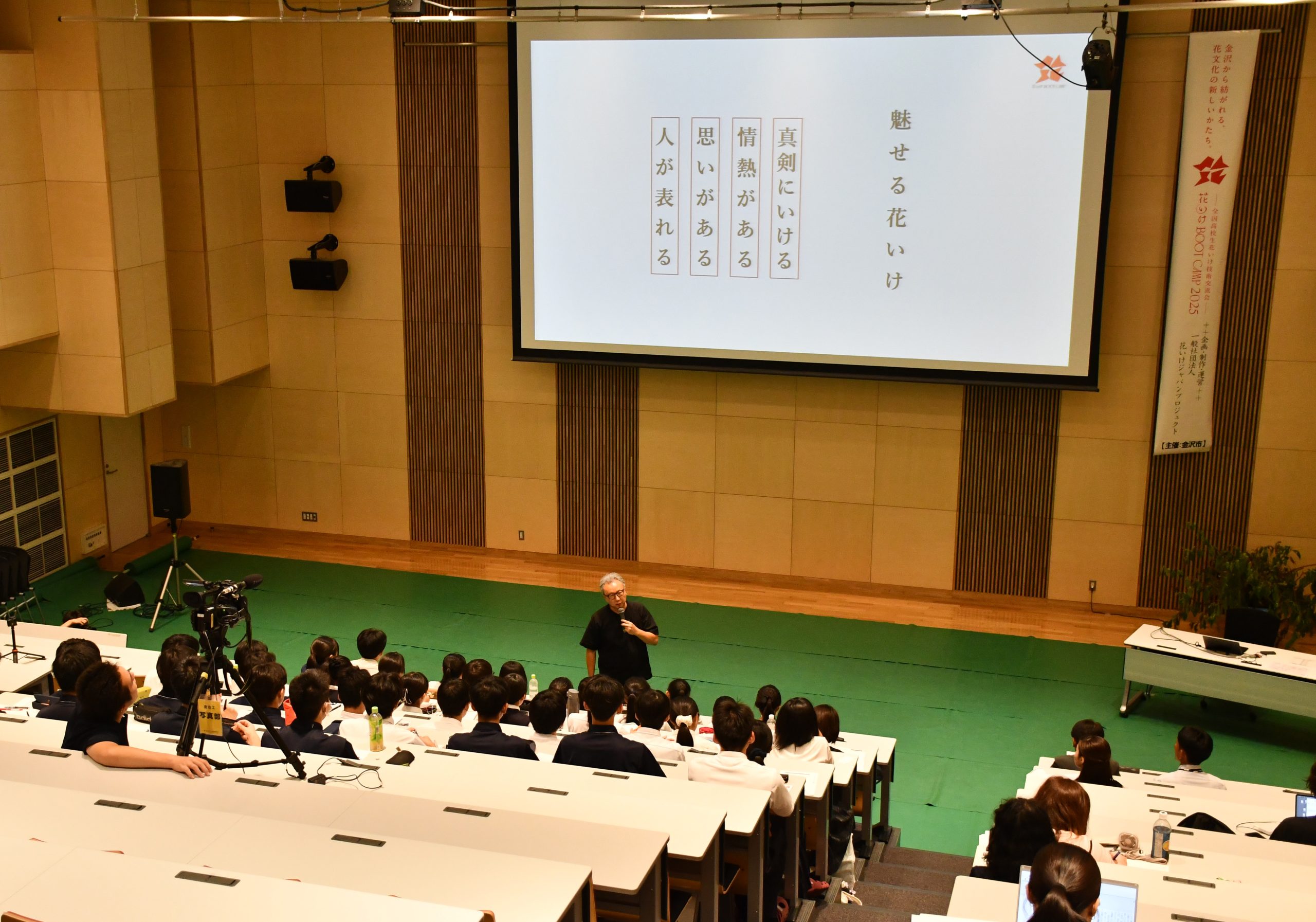 しかし、高校生花いけバトルがそれと同じか、あるいはそれ以上に大切にしているのが「魅せる花いけ」です。これは、「表現点」と深くつながっています。花をいけることに真剣に向き合い、情熱をこめて立ち向かうことで、花の中に「その人」があらわれてくるのです。その瞬間、花はただの植物ではなくなり、人の心を震わせる「なにか」に変わります。人は、そういう花に、感動するのです。