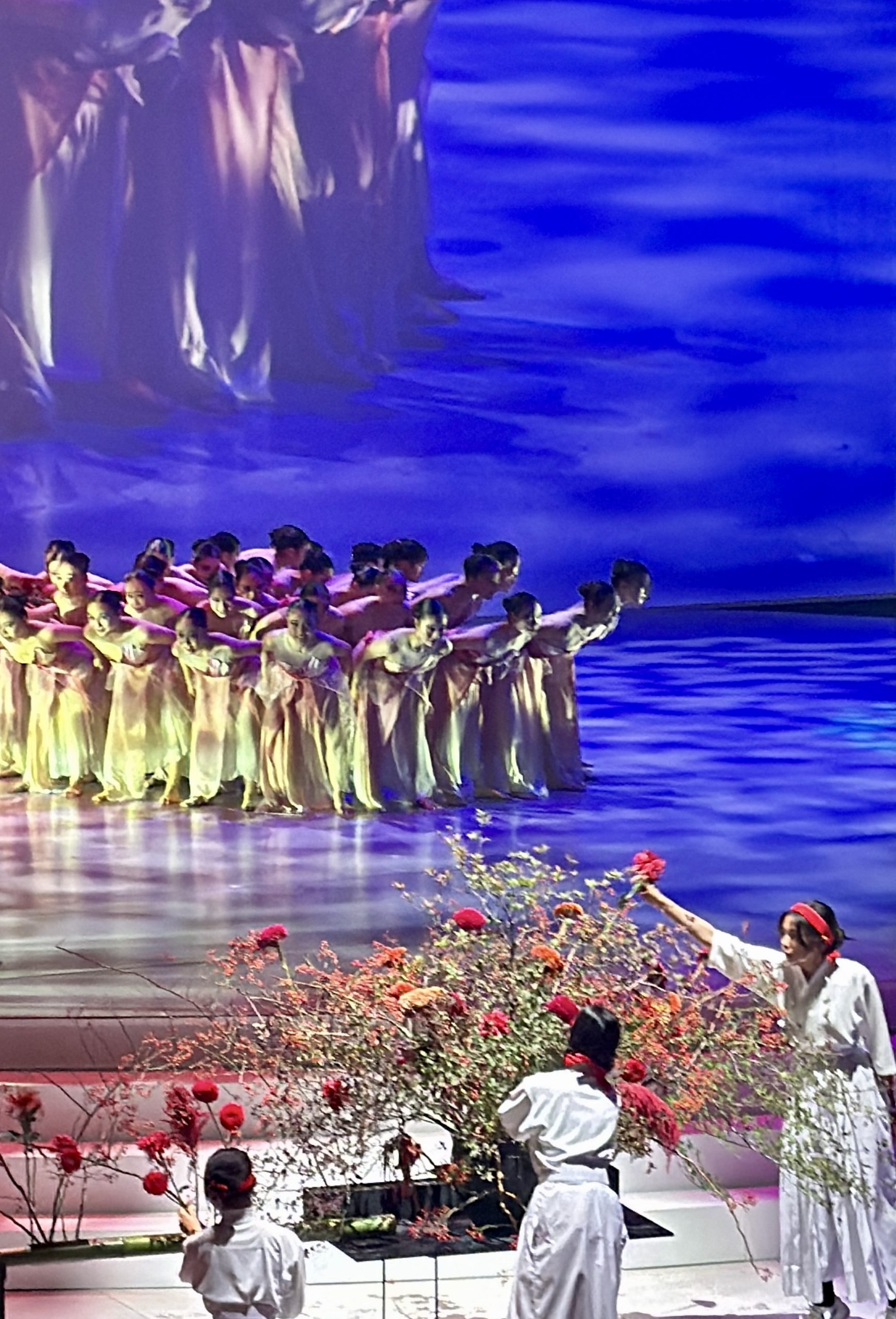 2027年、横浜で開催される横浜国際園芸博覧会2027「GREEN×EXPO2027」に向けて、未来を担う高校生が大阪から横浜へ、花で想いを繋ぐライブパフォーマンスは、AUN J クラシックオーケストラの和楽器による演奏と、帝塚山高等学校のダンスパフォーマンスとの競演により、大阪・関西万博のフィナーレに相応しい華やかなステージとなりました。